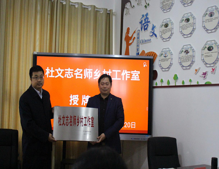 仪式上,谢正臣代表市委教育工委、市教育局为杜文志名师乡村工作室授牌,对工作室的正式成立表示祝贺。他指出,从2019年起,计划用三年时间在广元市乡村中小学创建100个以特级教师、广元名师为主体的乡村工作室。杜文志名师乡村工作室的成立是今年我市创新在7个县区试点建设30个广元名师乡村工作室之一。他强调,名师乡村工作室的建立对于加强教师队伍建设,提升教师专业素养,加强城乡教育资源共享和校际间交流具有重要意义,建立名师乡村工作室,要打破以往的固有模式,改“送教下乡”为“送师下乡”,通过直接指导、讲座辅导、课题引导、网络传导的方式,做好“教学示范”“教师培养”“教研指导”以及“同步课堂”等主要任务。对于后期名师乡村工作室的正常运行提出五点要求,一是名师所在学校要合理安排名师工作,保障名师组织开展活动所需的时间和设施设备;二是“名师乡村工作室”设立学校,要为工作室建设提供相应的场地保障,为工作室日常研修活动的开展提供支持与帮助;三是名师所在学校的主管部门,要健全完善支持市直属学校名师到乡村建立工作室的制度和机制,在经费、奖励、评先评优方面给予倾斜;四是“名师乡村工作室”设立学校所在县区,要统筹规划,完善支持鼓励政策,以“名师乡村工作室”建设为抓手,加强乡村教师队伍建设和乡村学校建设;五是市师培中心,要按照教育局安排落实好名师乡村工作室专项奖补经费。