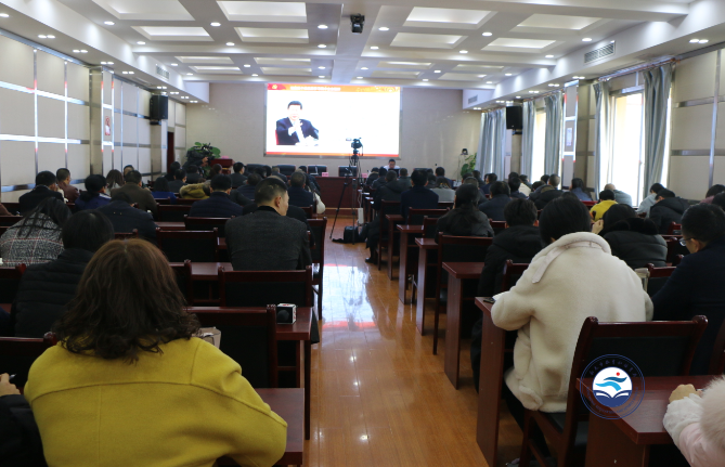 区教科体局机关全体干部职工在主会场聆听宣讲,全体教师在各学校分会场通过视频直播收看学习。