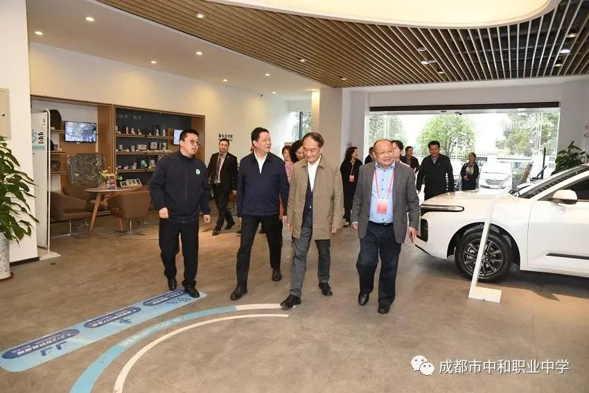 杨兴平、赵振铣一行先后视察了年会会场、校内锦上中和职中酒店等办会地点。随后参观了校内宝骏4S店以及校内职教实训基地。