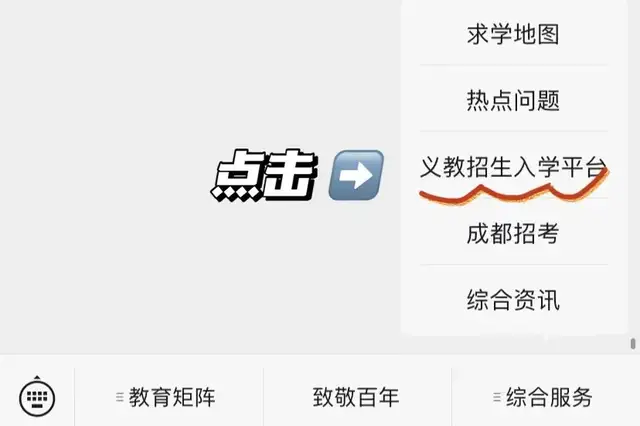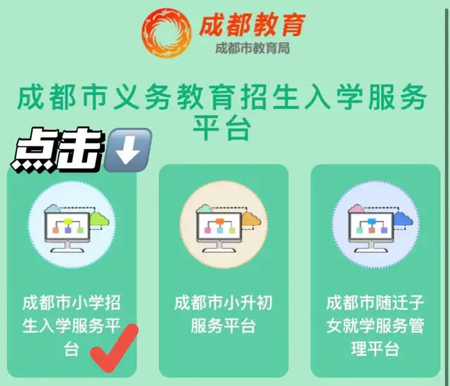点击“成都市义务教育招生入学服务平台”后,进入“成都市小学招生入学服务平台”即可。