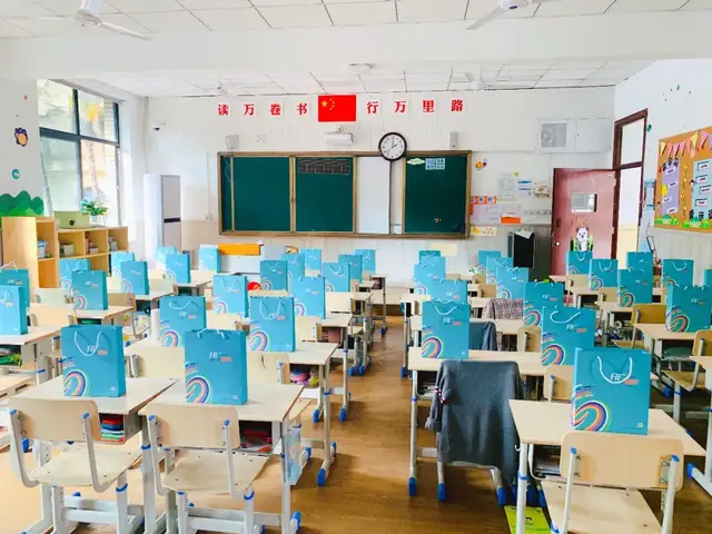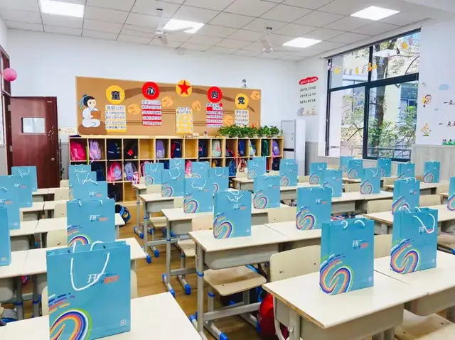孩子们回到自己的教室,那里还有学校给孩子们准备的惊喜,原来学长学姐们已经将学习的吉祥物“华华”“阳阳”整齐地摆放在了孩子们的座位上,这份礼物不仅饱含着附小对孩子们的爱,也寄托着附小对孩子们的期望。