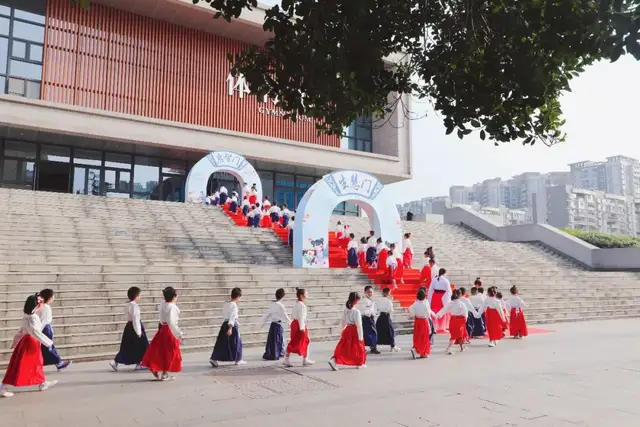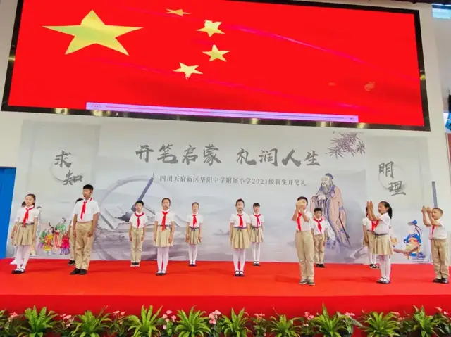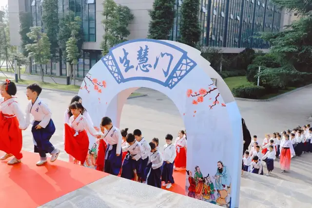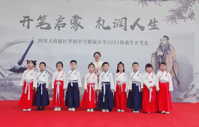 2021年9月30日,四川天府新区华阳中学附属小学为2021届三百多位天真可爱的附小娃筹备了一场特别的“开笔启智,礼润人生”的新生开笔礼。孩子们在老师的带领下一起穿过“启智门”,象征着将来不论将来求学之路多艰难老师将一路陪着孩子们。一个个挺拔的身姿,体现出附小娃昂扬向上的精神风貌。