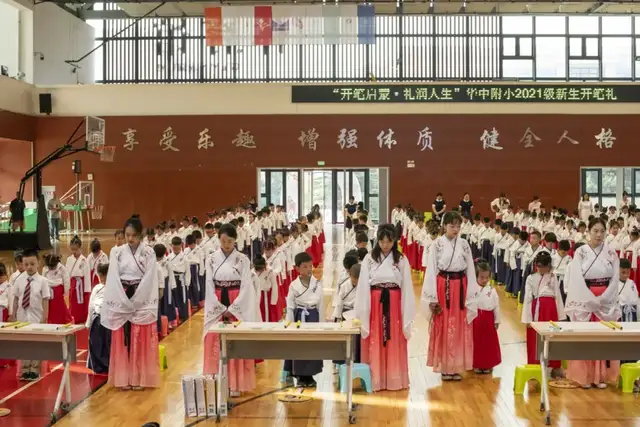 读书习字,开笔添智。由华中教育集团小学部总校长高校长,带领孩子们开启了人生第一礼——开笔礼。