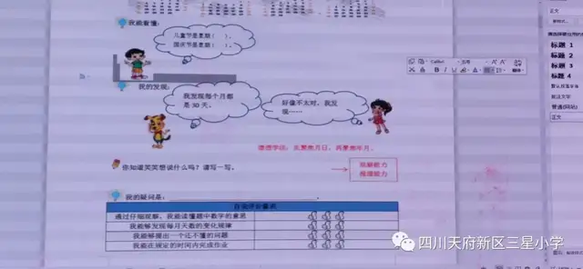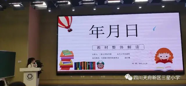 在暑假期间,三星小学的四位老师就开始着手准备此次教材解读了。胡跃庆老师和李丽老师就“量与计量”板块的六年教材进行了梳理,查阅了大量文献及专家著作,初步撰写了知识图谱。张学莉老师和彭建华老师对比教材,分析学情,较完整的解读了《年月日》单元。