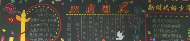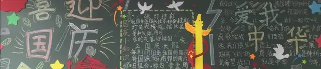 瞧,三、四年级的队员们用粉笔在黑板上描绘出了祖国最美的蓝图,献礼祖国;五、六年级的队员们用画笔书写对祖国的美好祝福,表白祖国。