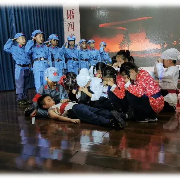 今年,是祖国72周年诞辰,也是中国共产党百年征程的新起点。在这历史的节点,为弘扬新时代爱国主义精神,在了解党史的基础上培养少年儿童朴素政治情感和共产主义道德,在实践活动中培养学生的历史担当感、当代使命感和社会责任感,成都高新区中和小学语文组开展了“再现峥嵘岁月 传承红色精神”为主题的国庆话剧展演活动。