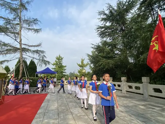 国庆勿忘祭先烈,争做新时代好少年。2021年9月30日上午,棠湖小学40名少先队员代表在双流区教育局及棠湖小学杨东宇副校长的带领下,走进双流烈士陵园,参加了“双流区2021年向人民英雄敬献花篮仪式”,以少先队员最崇高的敬礼,深切缅怀革命先烈,寄托对烈士的哀思之情,表达对英雄的无限敬畏,以实际行动告慰先烈英灵。