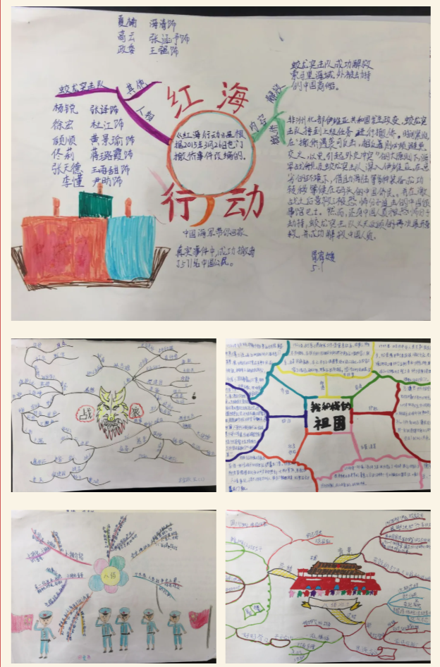 爱国主义教育影片,是传承民族精神的纽带,是启迪美好心灵的火炬,对塑造民族文化、弘扬正气有着重要意义,展现了我中华民族自古以来的民族气节和大义,不畏强权、坚定不移的民族信念。五六年级的老师为同学们提供了许多爱国教育影片——《我和我的祖国》《中国机长》《建国大业》《小兵张嘎》《闪闪的红星》《鸡毛信》《地道战》《地雷战》《八佰》《战狼系列》······孩子们在影片菜单中选择自己喜欢的电影观看,并精心制作思维导图、书写观后感、绘制爱国小报,用这样的特殊方式来牢记中国重大历史事件,寄托自己的深深爱国情。