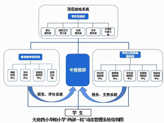 马校长特别强调了“服务”意识,扁平化管理,全体学校行政人员要以服务教师,服务学生,服务家长,服务社会为宗旨;全体教师要以服务学生,服务家长,服务社会为宗旨。在以“服务”为核心的管理理念下,学校建构了“两部一院”动态管理系统,学校的管理实施现代化学校治理体系,力求科学、规范、高效。全面落实立德树人根本任务,广泛开展理想信念教育,厚植爱国主义情怀,增强综合素质,树立健康第一的教育理念,完善教育质量标准体系,明确学生发展核心素养要求。加强课程教材体系建设,充分利用现代信息技术,丰富并创新课程形式。创新人才培养方式,推行启发式、探究式、参与式、合作式等教学方式培养学生创新精神与实践能力。大力推进校园文化建设,重视家庭教育和社会教育。建设智能化校园,统筹建设一体化智能化教学、管理与服务平台。利用现代技术加快推动人才培养模式改革,实现规模化教育与个性化培养的有机结合,创新教育服务业态。加快形成现代化的教育管理与监测体系,推进管理精准化和决策科学化。不断提高教育教学质量和办学效益,逐步行成出自己的办学特色,形成充满活力、富有效率、更加开放、有利于高质量发展的学校内部优化的组织管理结构和相匹配的学校运行机制。努力实现学校内部治理结构从管理走向引领,从标准走向个性,从制度走向文化,从行政走向学术,学校资源从封闭走向开放。