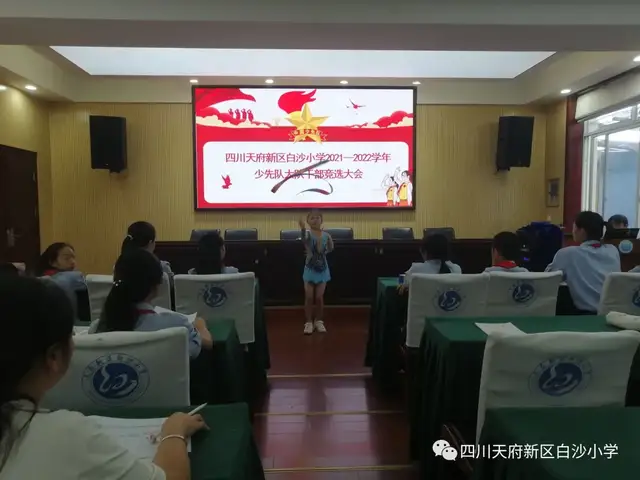 9月29日中午,白沙小学开展了少先队大队干部竞选活动。演讲中,队员们个个精神抖擞,每一位队员用他们铿锵有力的演讲,各自介绍自己的优点、上岗后的工作打算,展示自己对少先队工作的认真与热情,展现了少先队员应有的自信和风采。