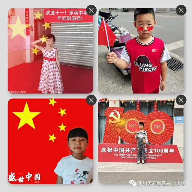 为庆祝中华人民共和国成立72周年,迎接十一国庆节,激发全校师生爱党、爱国的热情,深入学习贯彻习近平总书记庆祝建党100周年重要讲话精神,四川天府新区白沙小学开展了“祖国在我心中”庆国庆系列主题活动。