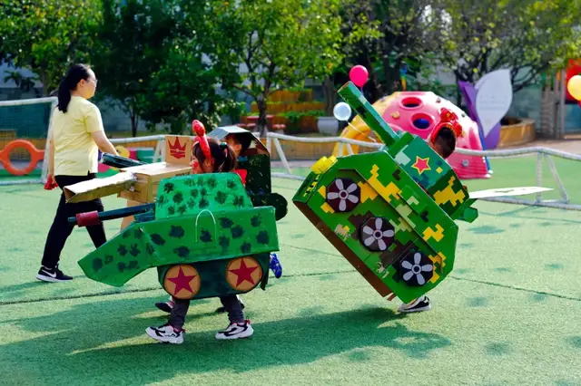 “中一萌娃,爱我中华,东风快递,使命必达”,迎面向我们驶来的是中一班的火箭军队,他们聪明爱国,是一群不简单的小小兵。