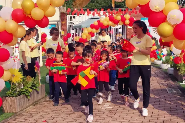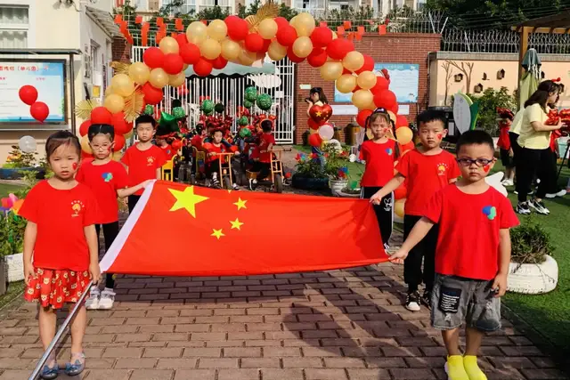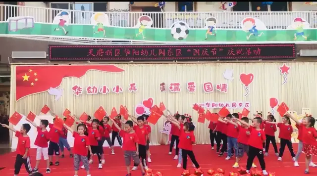 华阳幼儿园东区的师幼开展了主题为“华幼小小兵,满满爱国情”的国庆庆祝活动。