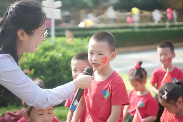 欢腾的国庆氛围让蘑菇园的小朋友们充分表达了自己对伟大祖国的祝福与热爱,“我爱你中国,我爱你五星红旗……”,吟唱在每一个华幼人的心中,唱响了华幼的每一片天空。