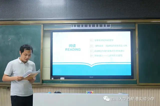学校综合楼三楼语文解读会场,六个教研组对阅读教学板块进行了解读。老师们依标扣本,清晰呈现年段目标知识点、教材重难点,细致梳理年段阅读方法。参赛教师们各抒己见,精彩纷呈。