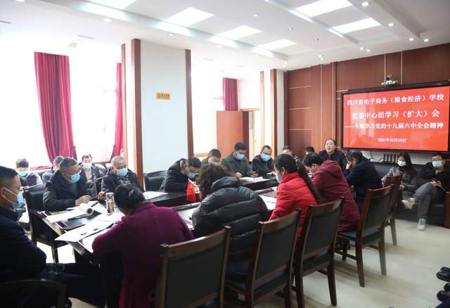 11月19日,四川省电子商务学校召开党委中心组专题学习(扩大)会,传达学习党的十九届六中全会精神,部署贯彻落实工作。校党委书记、校长秦明功主持会议并作了题为《学深悟透六中全会精神——奋力谱写学校时代华章》的党课辅导。