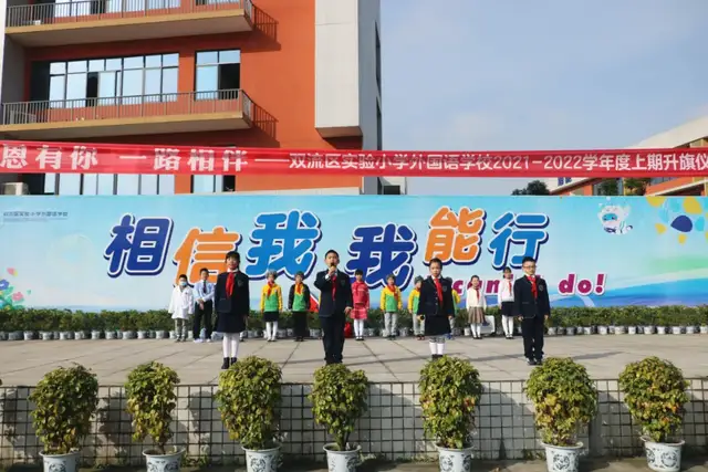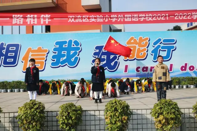 伴着明媚的阳光,双流区实验小学外国语学校的孩子们迎来了第十三周的升旗仪式。本周升旗仪式由三年级小木槿中队带来“感恩有您,一路相伴”的主题展示。