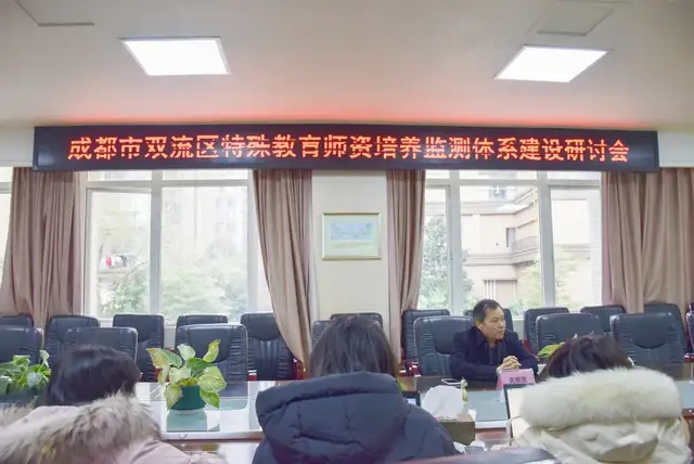 12月28日,为构建区域特殊教育师资培训体系,形成板块式特殊教育教师培训模式,双流区特殊教育资源中心组织开展“双流区特殊教育师资培养监测体系建设研讨会”,成都市特殊教育资源中心副主任先照勇莅临指导师资培训监测体系建设工作。