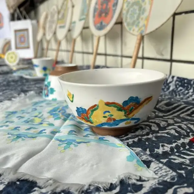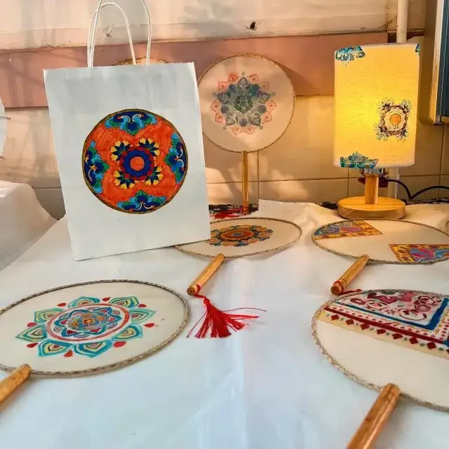 华阳实验小学代美智老师带来了一节精心准备的展示课——《敦煌藻井》。代老师先通过一段视频,让孩子们了解藻井是中国古代建筑的一种结构,它依附于建筑的顶部向上凸起,呈井口状,其建筑装饰作为中国装饰艺术之一,十分的具有艺术特色和视觉表现力。再通过问题设置,让孩子们探究出藻井纹样的特点:“图案美”“构图美”“色彩美”。最后通过一段微课让学生更直观地学习到如何将藻井纹样运用到扇子、碗、杯子、书签、布袋、服饰等物品中,形成文创产品。