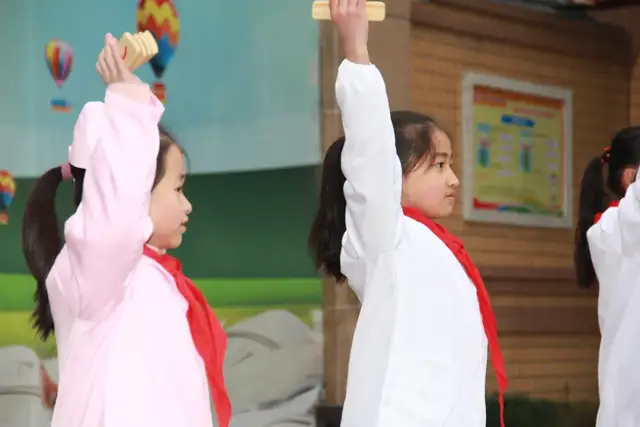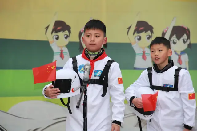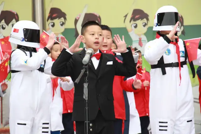 孩子们在表演的前半段带我们回顾了2021年的伟大瞬间。听!那庄重的宣誓响彻操场;瞧!我们新时代的宇航员们来了。他们带着祖国伟大复兴的梦想,带着对宇宙探索的精神,向我们宣告:中国已走在世界前列。孩子们用自己的方式演绎着祖国日新月异的发展,诠释着对祖国的热爱。
