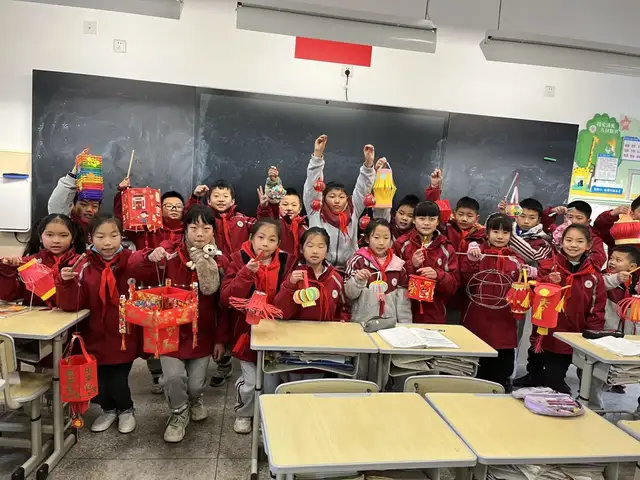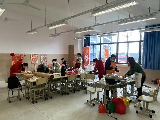 “爸爸妈妈,灯笼怎么做的呀?”在老师的号召下,家长学生积极行动起来,动手制作了一只只可爱的灯笼,看呀,校园到处都是红色在闪烁。