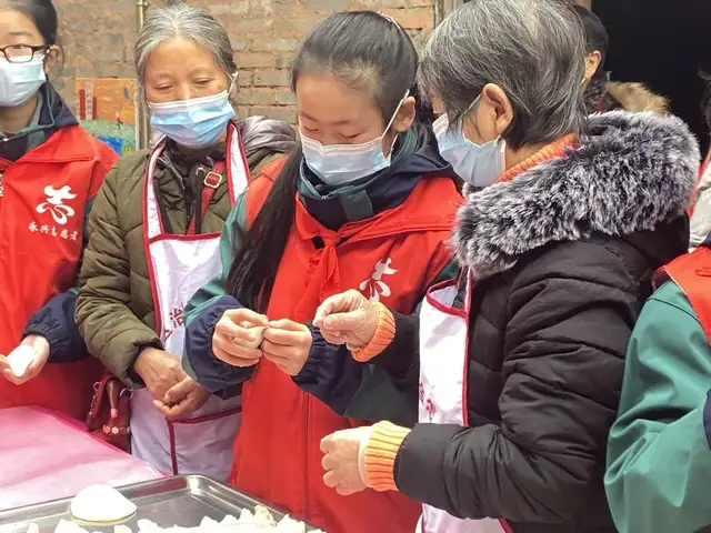 2021年12月31日,四川天府新区永兴小学优秀学生代表参加了由永兴场社区开展的“新年饺子宴·浓浓敬老情”志愿服务活动。