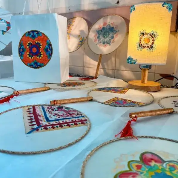 华阳实验小学代美智老师带来了一节精心准备的展示课——《敦煌藻井》。代老师先通过一段视频,让孩子们了解藻井是中国古代建筑的一种结构,它依附于建筑的顶部向上凸起,呈井口状,其建筑装饰作为中国装饰艺术之一,十分的具有艺术特色和视觉表现力。再通过问题设置,让孩子们探究出藻井纹样的特点:“图案美”“构图美”“色彩美”。最后通过一段微课让学生更直观地学习到如何将藻井纹样运用到扇子、碗、杯子、书签、布袋、服饰等物品中,形成文创产品。