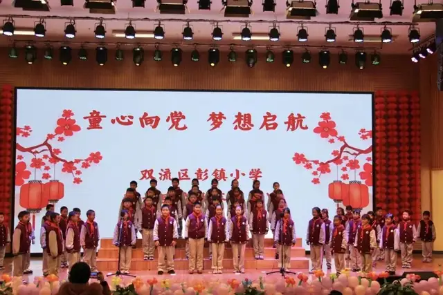 站在岁末我们回眸凝望,站在岁首我们翘首企盼。2021年即将过去,2022年的钟声即将敲响,为了丰富校园生活,培养师生爱校情怀,促进班级的凝聚力和团队协作精神,在元旦佳节来临之际,双流区彭镇小学于12月31日在阶梯教室举办了以“童心向党 梦想起航”为主题的庆祝元旦校歌赛。为做好疫情防控,减少人员聚集,各班级在教室同步收看视频直播。