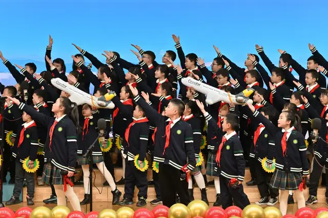 不只是现场,在教室观看直播的孩子们也HIGH翻天啦~