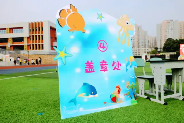 在美食区里有海滨城各类美食照片,供学生自由选择,孩子们对自己喜欢的美食向老师们做介绍,并说明自己为什么喜欢。孩子们一说到自己喜欢的美食,都滔滔不绝,说得老师们也想品尝啦!孩子们在海滨城遨游后,就能到盖章处盖上可爱的小海豚章,这些小海豚也仿佛在为孩子们的闯关胜利而喝彩呢。