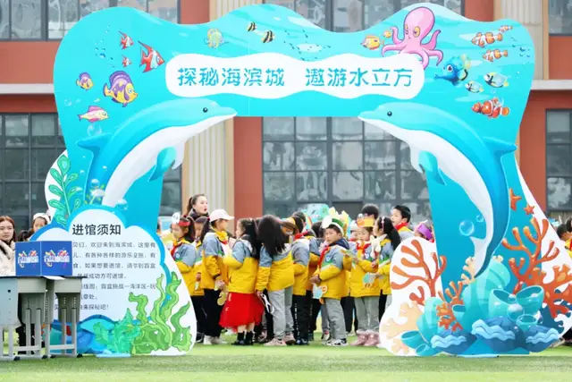 三年级语数外各学科都以双流某一个突出的地方作为闯关游的情景,现在就让我们出发,先去“探秘海滨城,遨游水立方”吧。孩子们想要进入海滨城,可是要领取进馆任务哦,这趣味字谜一点儿难不倒聪明的小能娃们,他们猜中字谜就能进入海滨城探秘了!