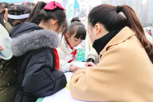 孩子们摘下沁人心脾的茶叶,原来背面藏着一首首古诗,瞧,我们陶醉其中,吟诵着千年前的古韵。