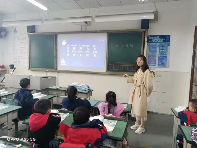 11月12日,龚定华老师走进1年级9班张玲燕的课堂,听了《小小的船》一课。张老师对识字写字教学的重视给导师留下了深刻的印象。龚老师给张玲燕指出:一年级的课堂要用儿童化语言吸引学生,用多种手段激发学生学习兴趣。