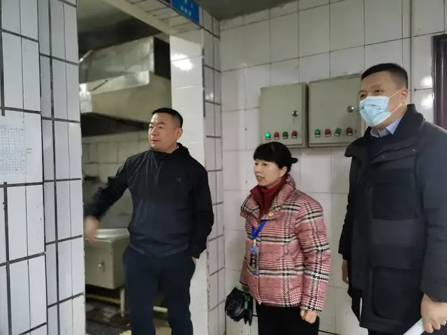 陈局长一行在视察学校食堂时,详细了解了食堂工作情况、师生午餐情况,对学校食堂存在的困难给予了详细的建议和指导。
