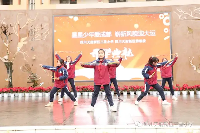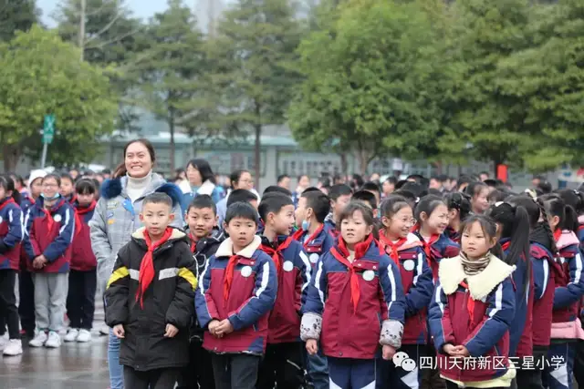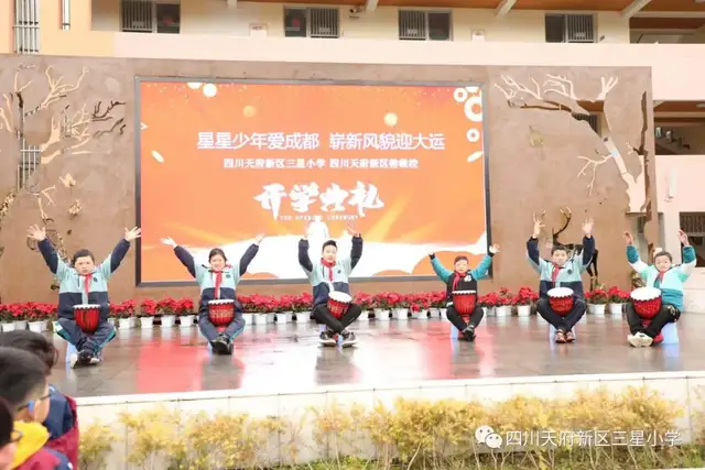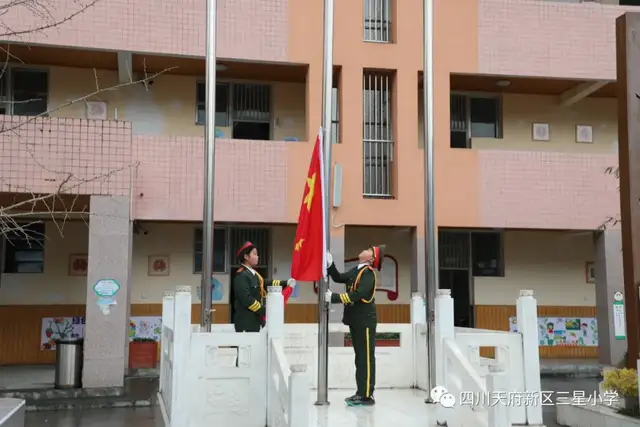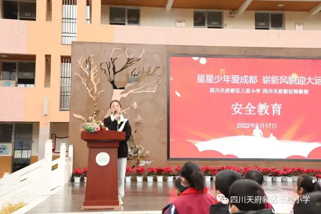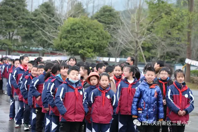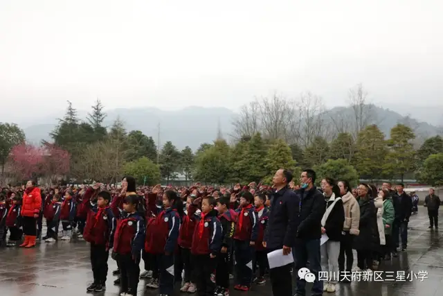 2月17日上午,五星红旗迎风飘扬,铿锵的国歌声响彻校园,四川天府新区三星小学2022年春季开学典礼拉开帷幕。