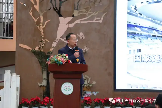 白贵忠校长热情洋溢的致辞吹响了三星小学开学典礼的号角。白校长用春晚《只此青绿》带给大家文化自信的感动、电影《长津湖之水门桥》带给大家爱国献身的感动、北京“双奥之城”带给我们骄傲自豪的感动、女足“逆转重生”带给我们奋进拼搏的感动以及谷爱凌勇夺金牌带给努力自信的感动……鼓励全体师生要爱祖国、爱探索、爱运动、爱表现、爱拼搏,希望学校每一个孩子能够以德立人、以智慧人、以体塑人、以美化人、以劳成人,拥抱初心,追逐梦想,肩扛重任,携手书写华章,自信阳光向未来!