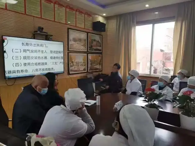 王刚主任就燃气安全使用作出培训,要求大家对照燃气使用明白卡,规范操作,安全使用。就消防、用电、用气提出自查要求,务必每月自查一次,以确保食堂安全工作万无一失。对食品的采购、食品加工、餐具的清洗及消毒做出指导性培训。