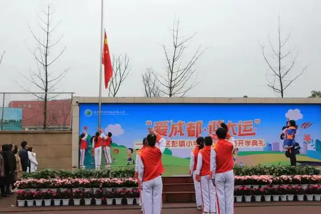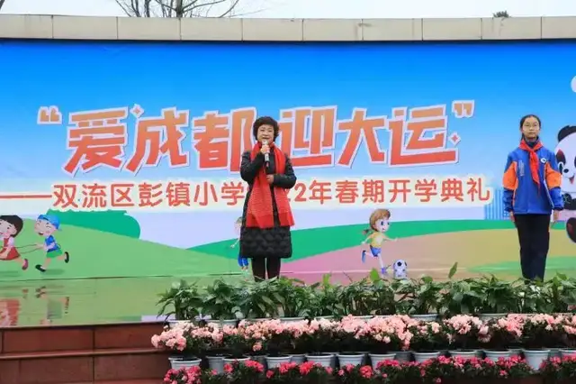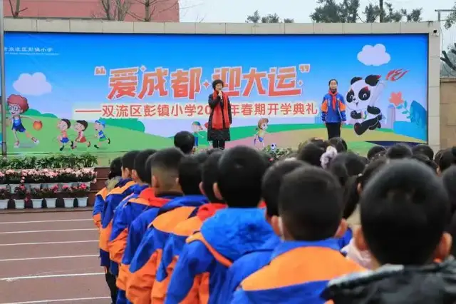 2022年2月17日上午,全体师生齐聚彭小操场,举行了以“爱成都 迎大运”为主题的2022年春期开学典礼。