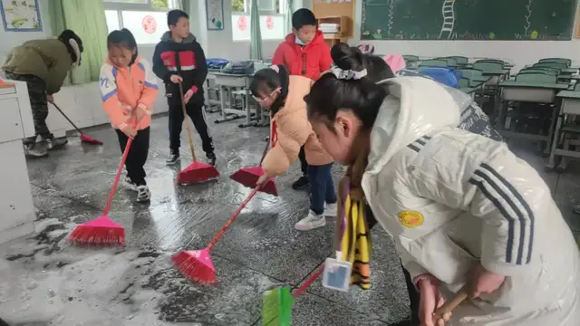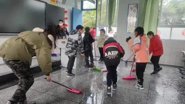 2月16日报名当天,学校组织全校师生进行卫生大扫除。在老师的带领下,同学们有的打扫、有的拖地、有的擦拭桌椅门窗、有的清理墙面张贴物……经过大家热火朝天的辛勤劳动后,校园呈现出了更加整洁有序的新面貌!教室内窗明几净、桌椅摆放整齐;公区干净整洁、无任何卫生死角;办公室地面桌面一尘不染……师生们也在共同参与卫生大扫除的过程中增强了保洁意识和争创卫生校园的积极性。