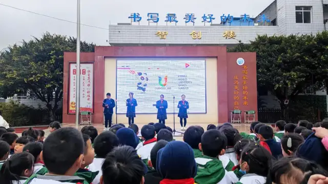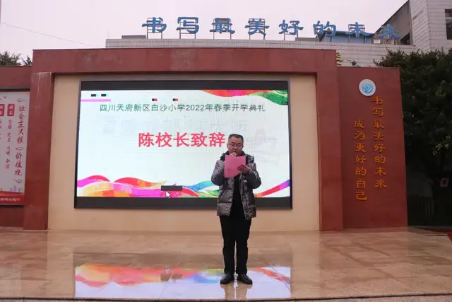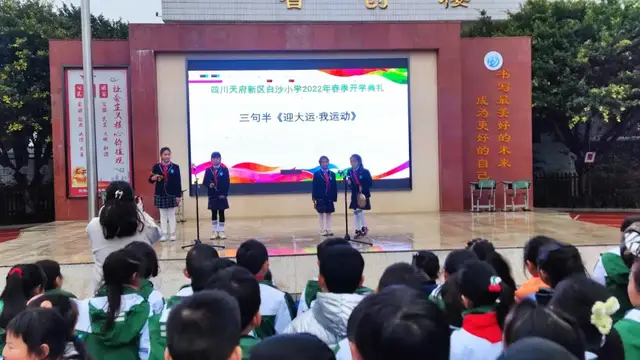 2月17日下午,天府新区白沙小学全体师生齐聚操场,隆重举行主题为“爱成都·迎大运”的开学典礼。