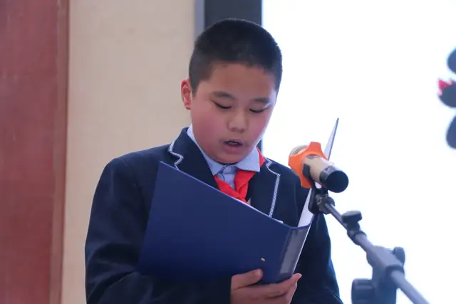 学校党支部副书记、副校长陈利勇首先登台致辞,希望孩子们在千帆竞发、百舸争流的春天,用实际行动实现新目标、绘制新蓝图。