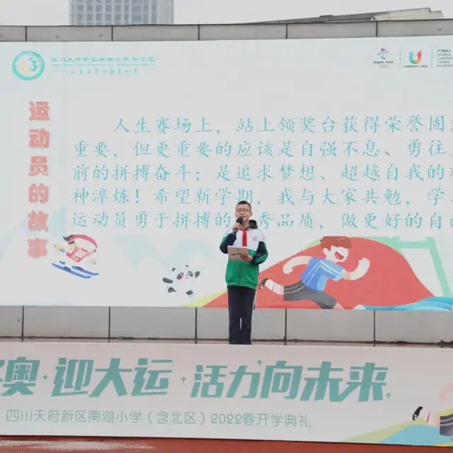 新的一年迎来新学期,开学第一天,四川天府新区南湖小学2022年春季开学典礼隆重举行!
