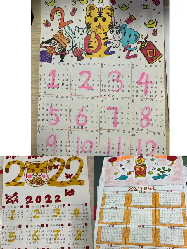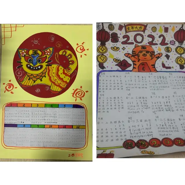 孩子们还制作了有趣的闹钟和台历,并利用假期用小报的形式把虎年元素和所学科目相结合,孩子们乐在其中。