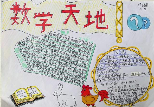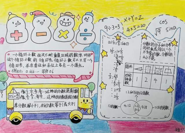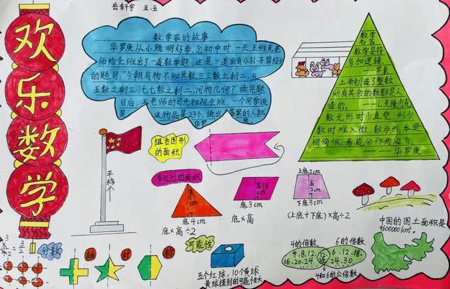 自编小报不仅能够培养学生书写、绘画、设计、创作等综合能力,自编数学小报还能沟通数学与其他学科之间的联系。让我们一起来欣赏五年级孩子们巧妙构思的数学小报吧!