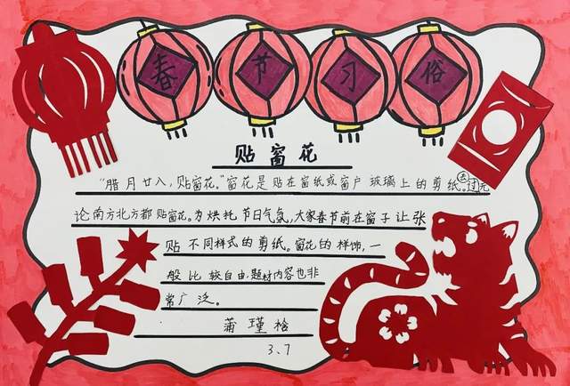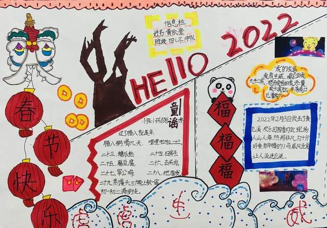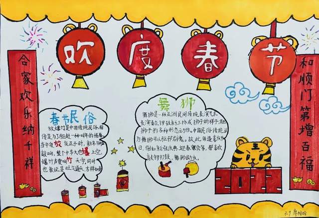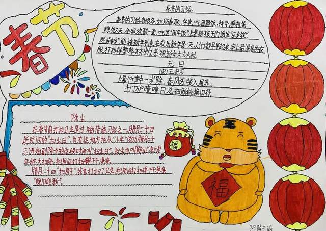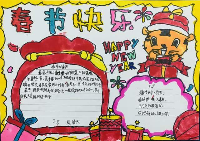 通过孩子们的手抄报,我们看到了孩子们眼中的春节,也展示了孩子们多才多艺的能力,让孩子们更加了解中国的传统节日,更表达了孩子们对节日的热爱,对传统的传承。