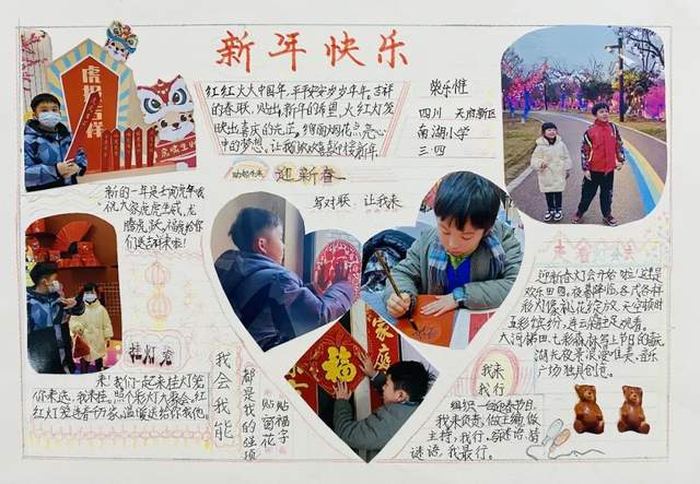 还有很多很多,也正是这些回忆,不断酝酿着我们的年味,让我们无限向往、魂牵梦萦。四川天府新区南湖小学(含北区)的孩子们用他们的五彩画笔,将春节的传统文化魅力尽情展现,还等什么,快来看看呀!
