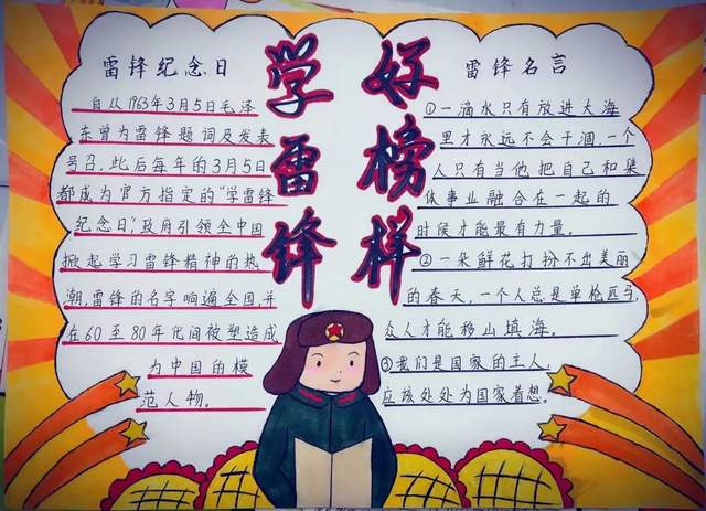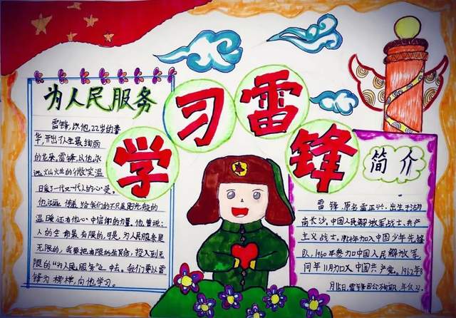 1963年3月5日,毛泽东同志为一位普通战士题词“向雷锋同志学习”。近50年来,雷锋的名字响彻中华大地,名扬五洲四海。“学雷锋,心向党,讲品德,树新风”,已成为中华儿女的自觉行动。雷锋精神是指从雷锋的言行和事迹中所表现出来的助人为乐、爱国、热情、无私奉献、勤俭节约、敬业、热爱劳动、忠于革命忠于党的精神。