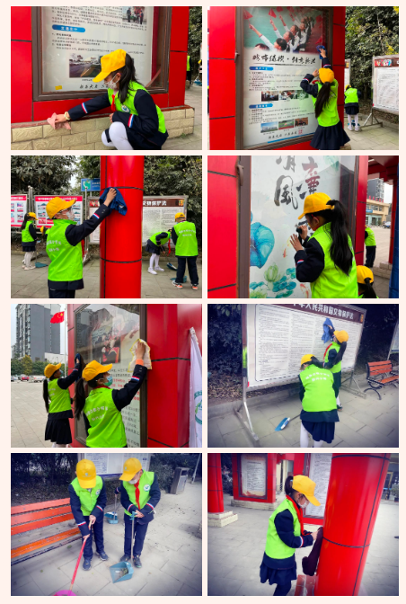 其次是宣传雷锋精神。在老师的有序组织下,四年级的孩子们身穿“绿色之友小分队”服,利用课余时间走上街头,来到社区、广场等地捡拾垃圾。打扫社区广场、公共设施等地方的卫生,孩子们从小事做起,从身边做起,将点点滴滴的爱心汇聚成一股强大的暖流。