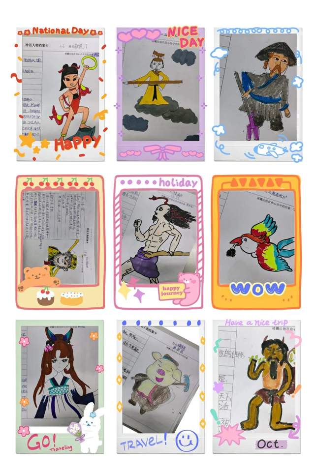 学生们设计的人物档案、人物名片、思维导图等内容丰富,图文并茂,创意无限。尤其是色彩与意境和谐明快,形状美观大方有特色,给大家带来强烈的视觉冲击力和直观的整体美感。