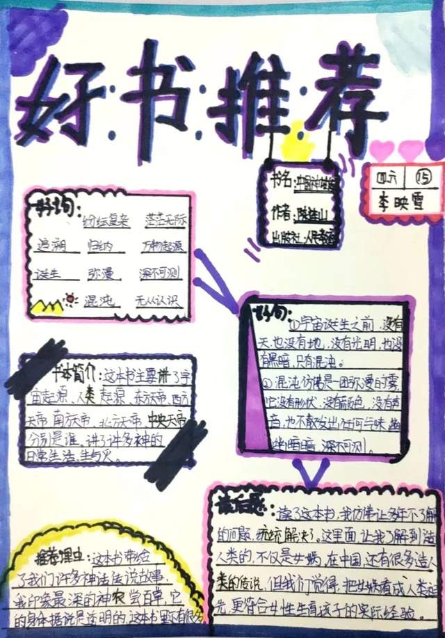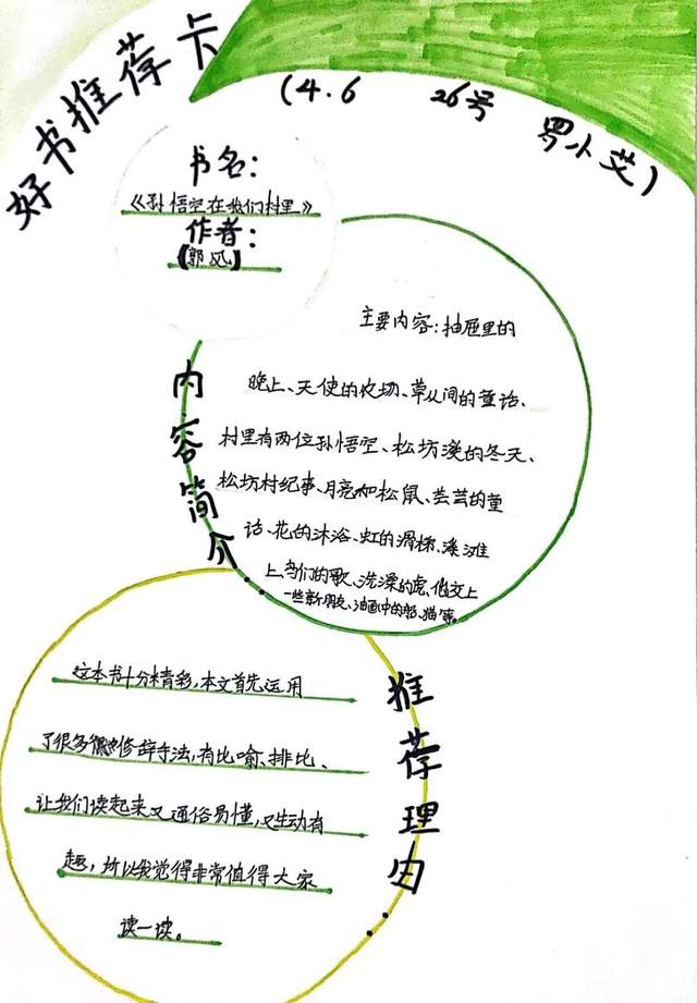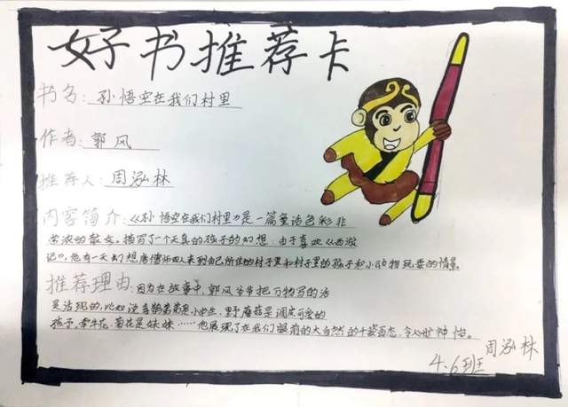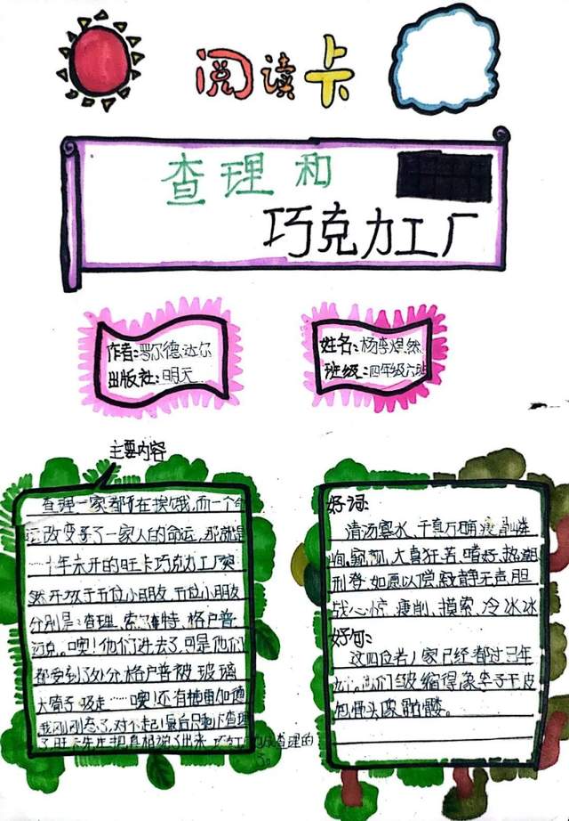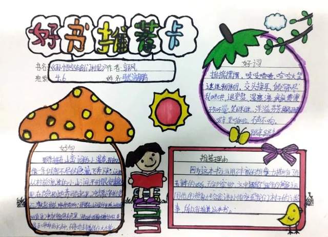 有对文章好词佳句的摘抄,有自己的读书心得,还有推荐大家阅读的理由……这一张张精美的作品充分显示出同学们的巧妙构思与读书热情,孩子们从欣赏中了解了更多的书籍。